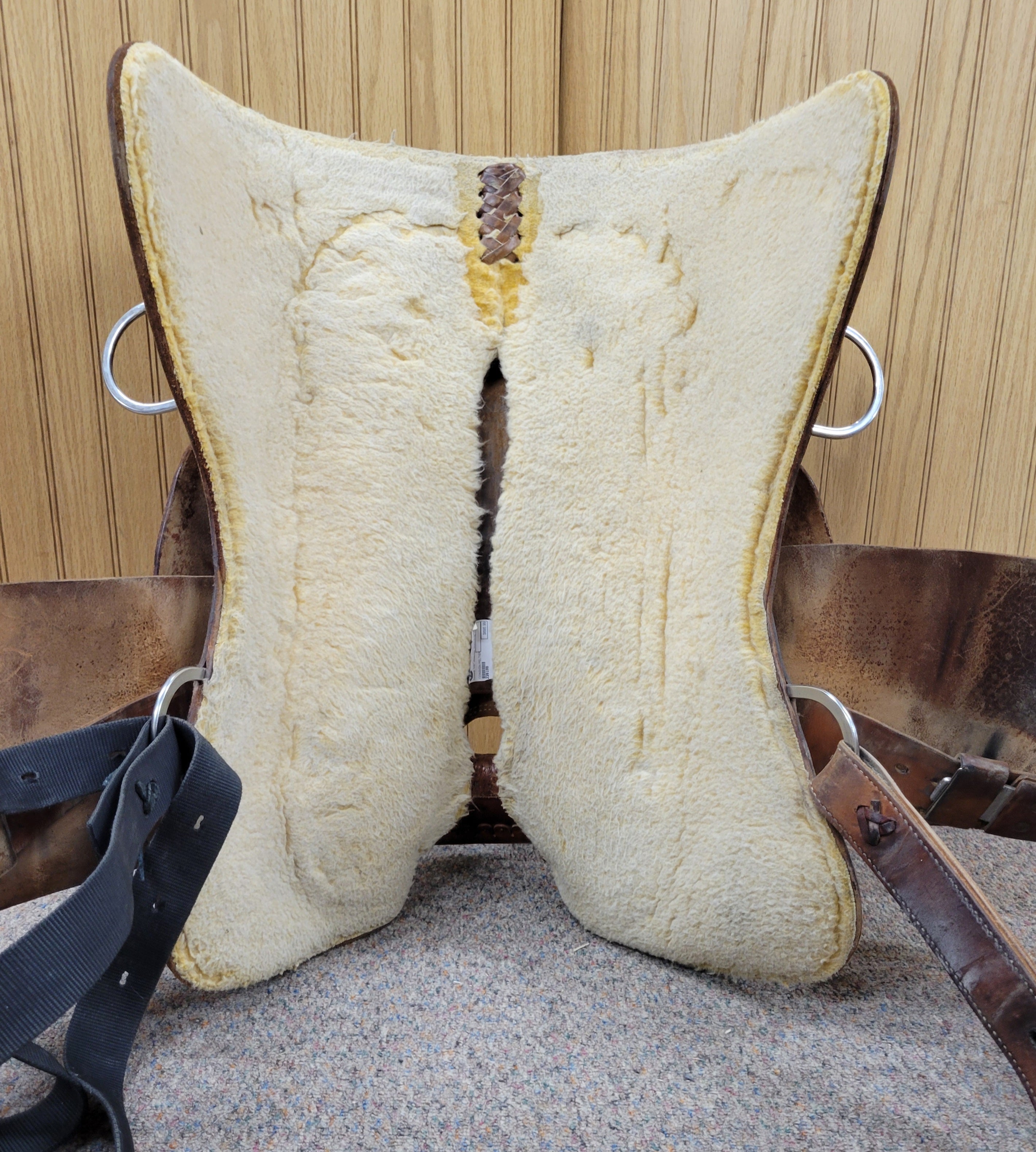 This Alamo reining saddle is in great condition with high quality materials and artisan craftsmanship. It features a 16" seat, wide bars, and can easily be transferred between stores upon request. Shipping is also available for an additional cost.