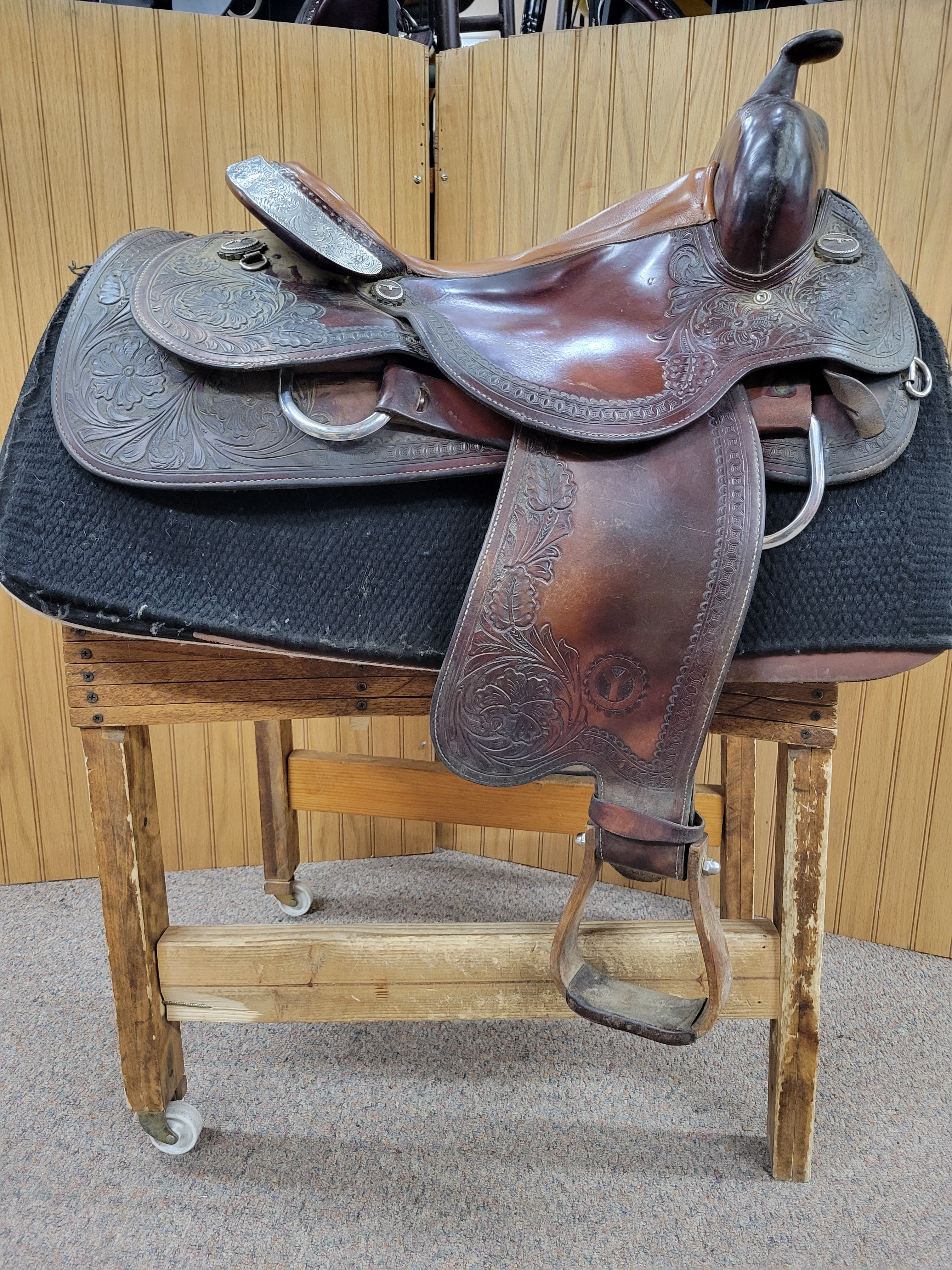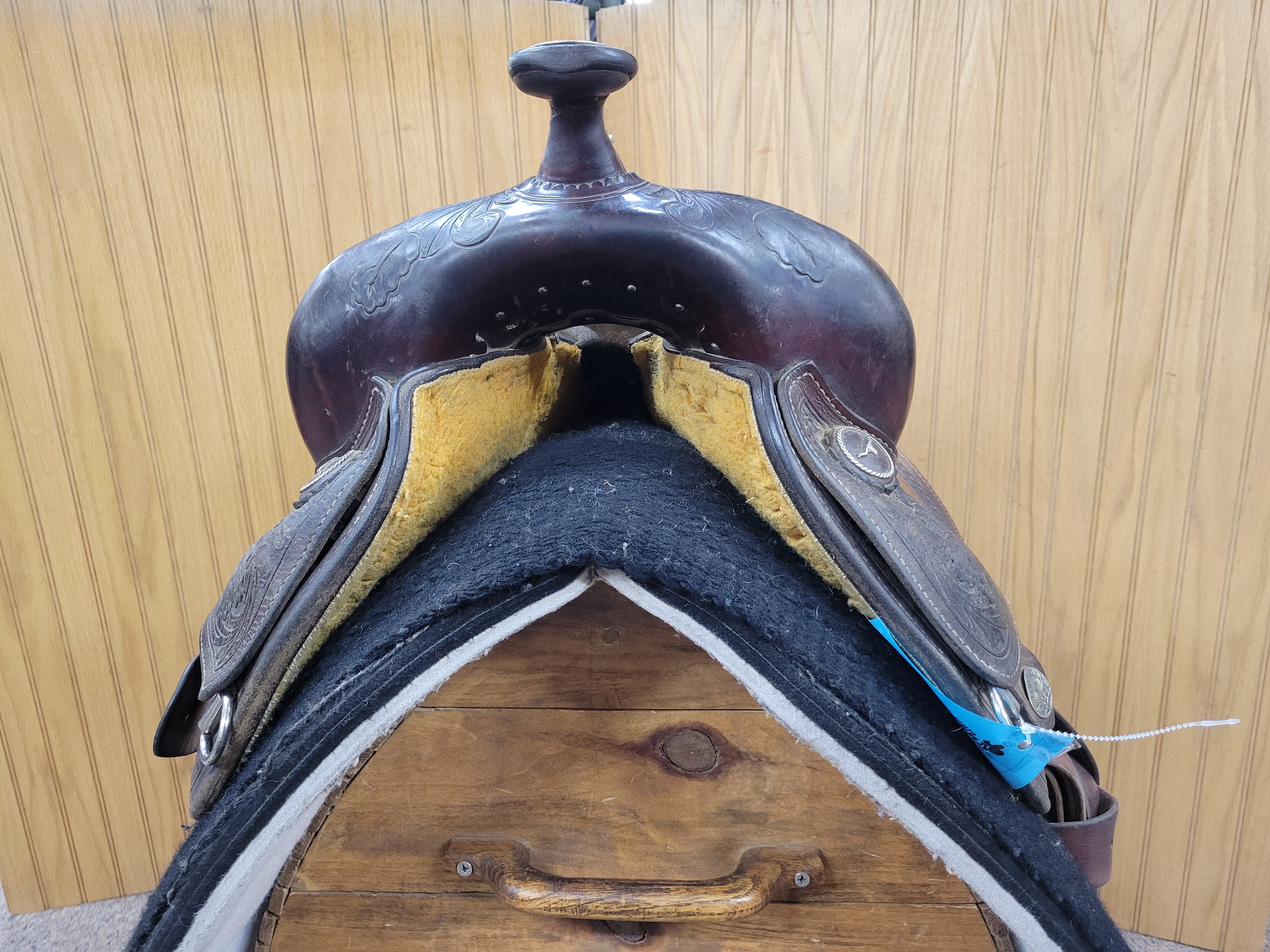 This Circle Y reining saddle is in great condition with high quality materials and artisan craftsmanship. It features a 16" seat, wide bars, and can easily be transferred between stores upon request. Shipping is also available for an additional cost.